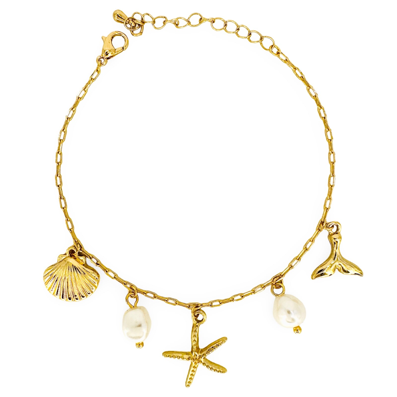 Faux Pearl, Clamshell, Starfish, & Mermaid Tail Alternating Station Bracelet
