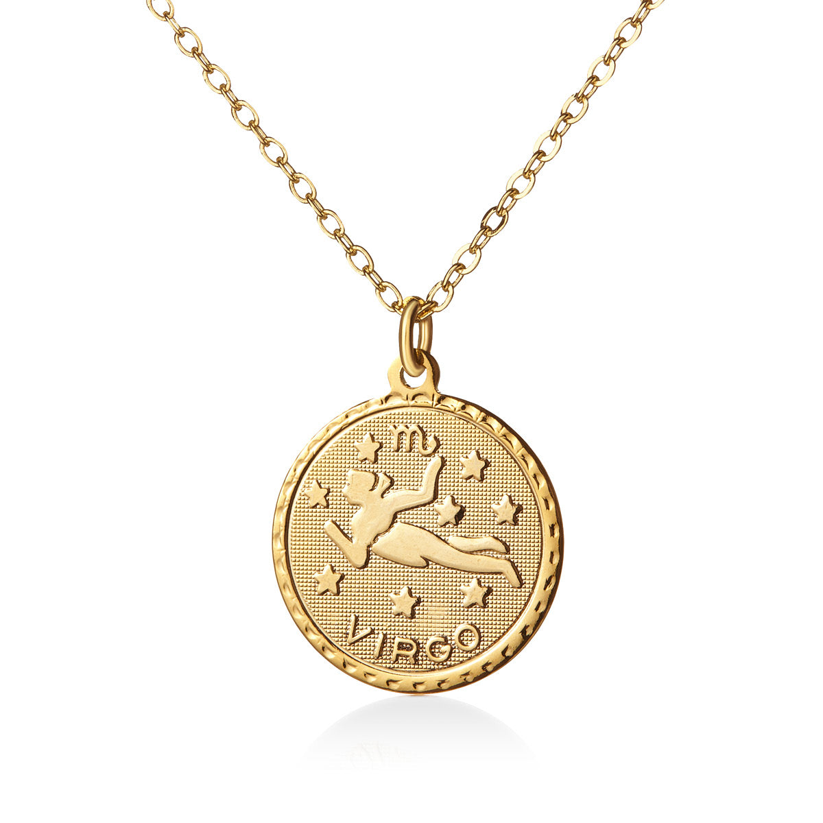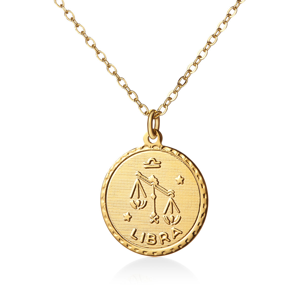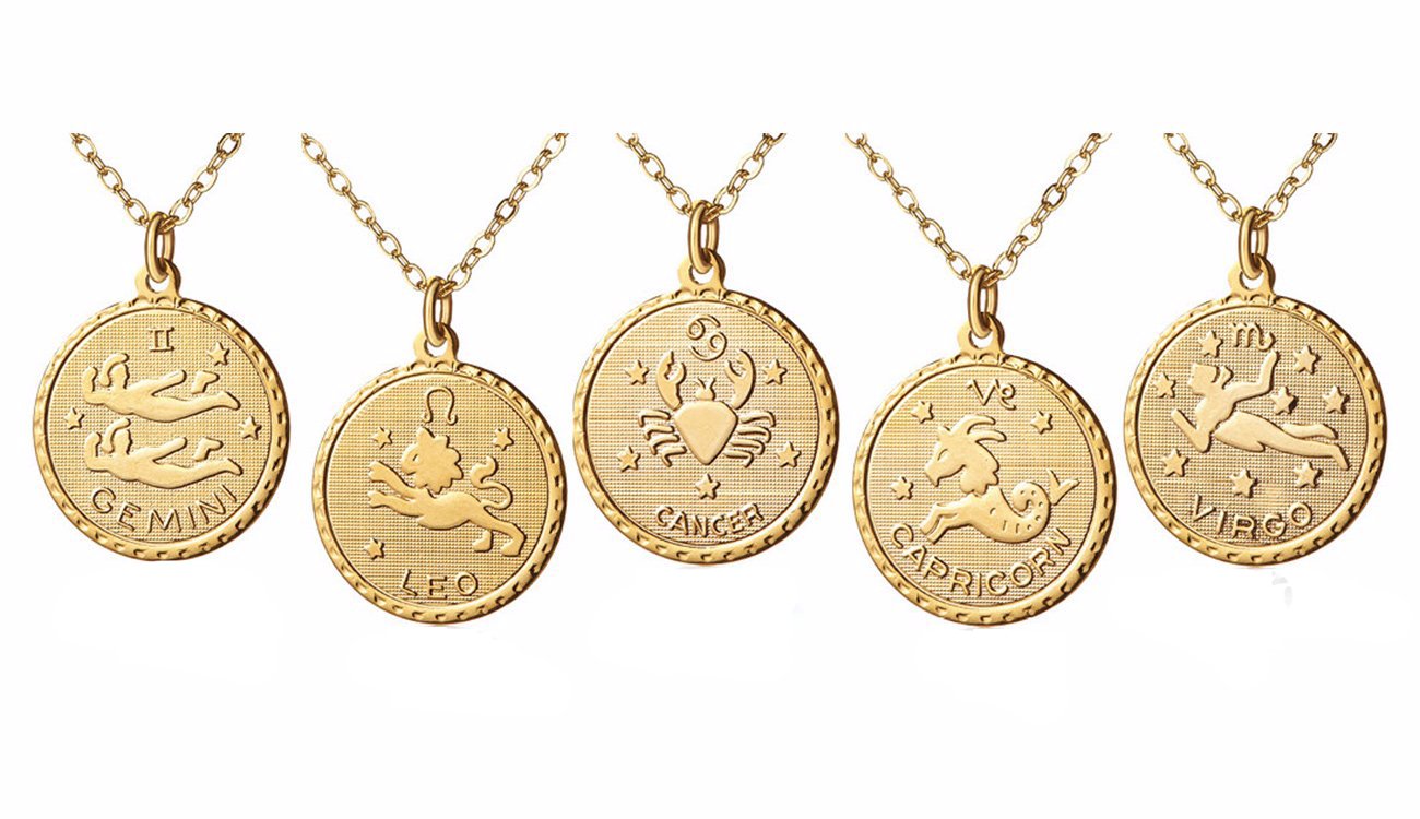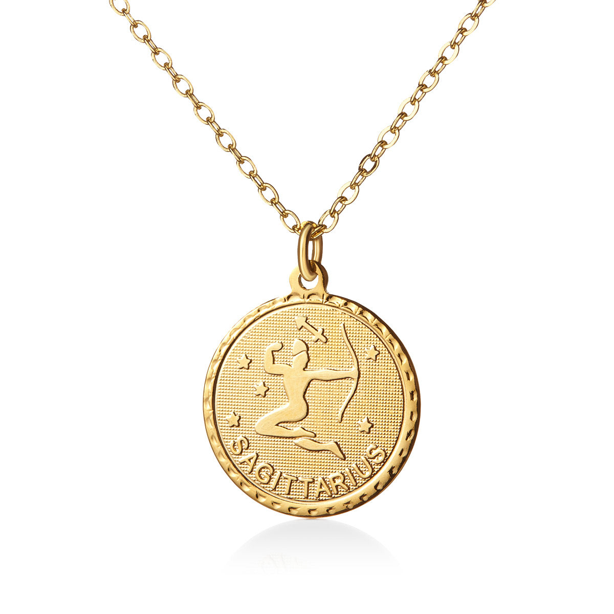 Vintage 14K Gold Plated Brass Zodiac Token on chain.