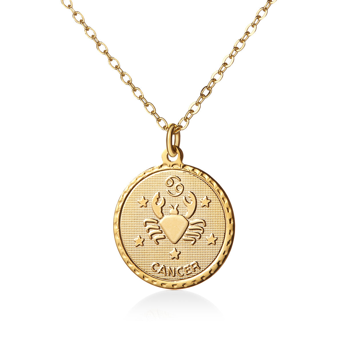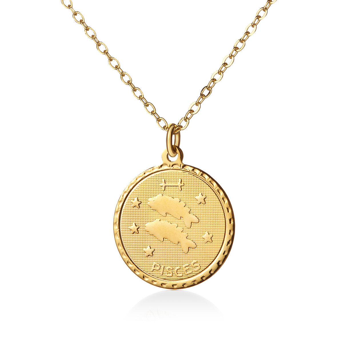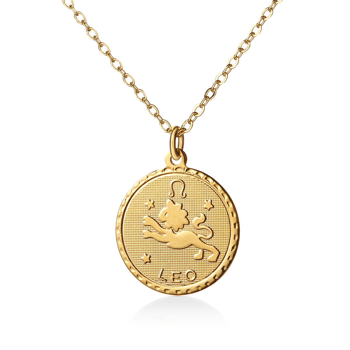 Vintage 14K Gold Plated Brass Zodiac Token on chain.